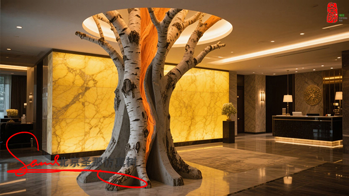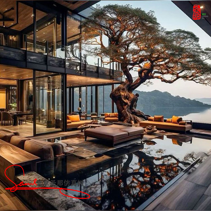 項目描述:玻璃鋼仿真樹可以圍繞溫泉池布置,營造出熱帶叢林或原始森林的環境。例如,在某些溫泉度假村,玻璃鋼仿真樹與假山和流水相結合,營造出“古樹根部涌出溫泉”的視覺效果,既提供遮蔭,又強化了“自然愈”的主題。一些設計還將玻璃鋼仿真樹與照明系統相結合,在夜間將溫暖的黃色燈光投射到樹皮紋理上,營造出神秘的洞穴氛圍。