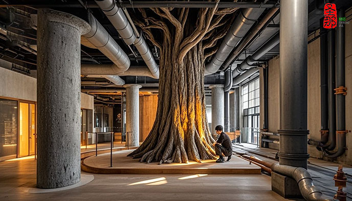 項目描述:用仿真樹裝飾立柱,既解決了柱子裝飾問題又創造出了高仿真的自然環境,讓員工在綠意盎然的環境中工作,心情愉悅。