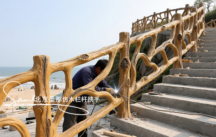 5、北京廠家現場雕塑制作仿木欄桿,適用于多種環境。
