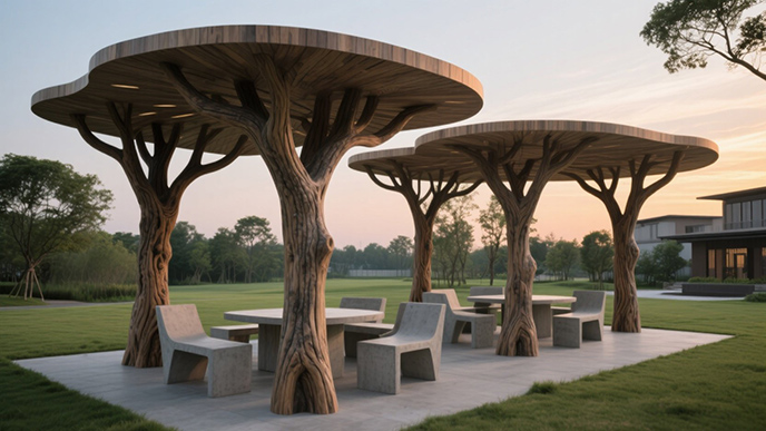 2、強度高:仿木產品應用鋼筋、混凝土做基材,有高效抗折強度和抗彎曲強度。