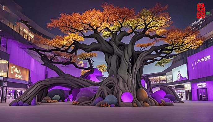 仿真榕樹在feng水上的作用多用于藏風聚氣及遮沖檔煞的作用,具體的使用方法是用用仿真榕樹大門來充當生態園的出入口,這個出入口就是氣口,氣口放在哪里,就是對應的feng水二十四山起作用,比如把氣口放在南方丙位,對應的feng水作用就是:丙水汪,上忠良,無論寬大發兒郎等。遮feng擋煞時就直接做在相沖等氣口上,feng水有云:眼不見,不為煞,主要起到影壁的作用。