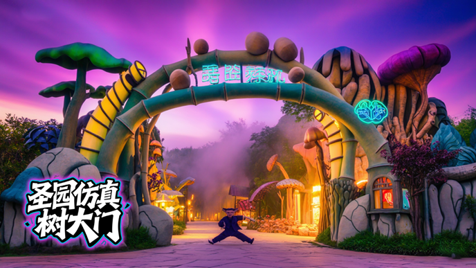 湖北恩施漫無寶f 景區仿真樹大門施工過程,大門采用巨型橫木結構,跨度達到16米,f 格采用高仿真古樹。在仿真樹大門設計之初,北京廠家設計了多款傳統方案,但都沒被甲方選中,在開會討論方案時,有的設計說到:距離真樹這樣近,帶樹葉的仿真樹制作得再像也比不過真樹,這句話給了大家設計靈感,于是設計了沒樹葉的仿真古樹來制作仿真樹大門。