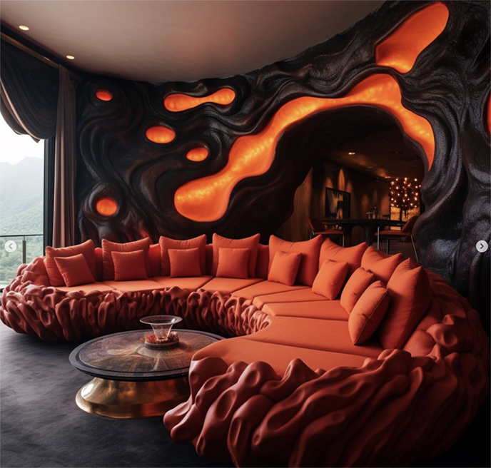 仿山洞藝術客廳是一種結合自然與現代的室內空間