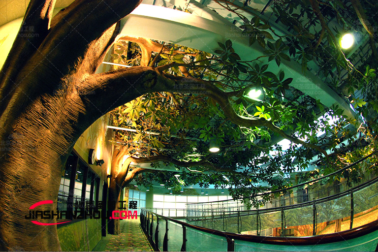 觀察真正的大樹,構(gòu)成仿真樹樹體的所有樹枝、葉子及縫隙不是東倒西歪的雜亂布置,而是按照一定的平順關系相互結(jié)合成有機的整體,要在變化的景物中加強結(jié)構(gòu)上的的聯(lián)系和同一?;镜脑砭褪菑倪h處看到的單色仿真樹,到近處觀看是用多種顏色組成的。
