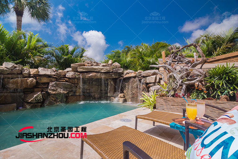 花園結(jié)合了植物、瀑布和仿真假山等自然元素,營造出自然宜人的環(huán)境,仿真假山整體氛圍簡潔而充滿活力。房間、露臺、戶外酒吧、仿真假山、戶外用餐區(qū)和秋千等設(shè)施都配備齊全,以滿足各種戶外娛樂和休閑需求。