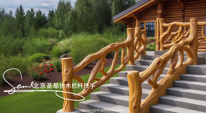 項目描述:按北京淡水河谷的命名方法,兩根主立柱之間為三根橫向仿木的圍欄就命名為三段仿木圍欄,其中三根橫圍欄又有圓形、方形、八棱形。