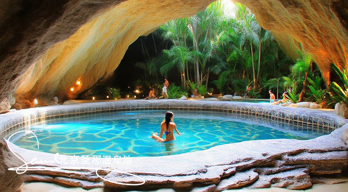 塑石假山溫泉池重現了洞穴的粗糙質感