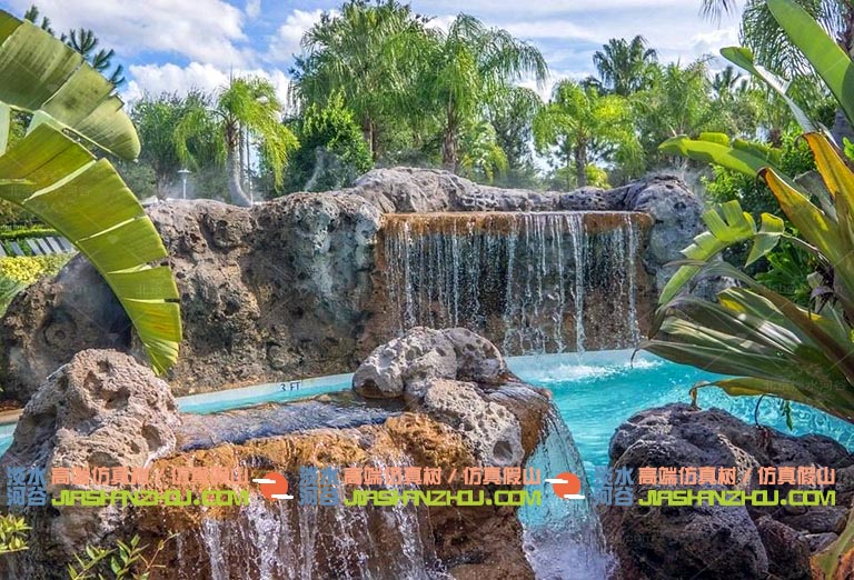 5、塑石假山經(jīng)常流水的部位上色:模仿自然的手法,把調(diào)制好的暗色色漿從物體頂部像下雨一樣,任其流動(dòng)所形成的顏色效果,在調(diào)制色漿時(shí)要注意,色漿要調(diào)制得很稀,不要調(diào)制很稠,要經(jīng)過多遍的流淌達(dá)到自然的效果。6、表面亮色:在塑石假山的凸出部位噴涂淺色色漿,形成亮、暗對(duì)比的效果。